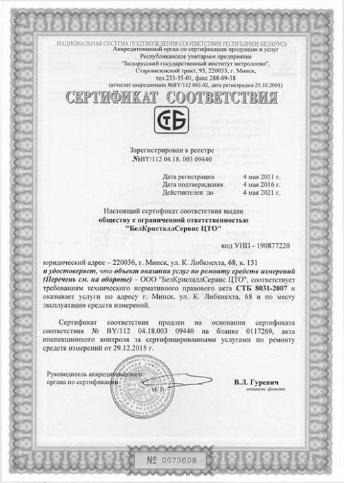 Компания является единственный официальным партнером ООО "Кристалл Сервис" на территории Республики Беларусь